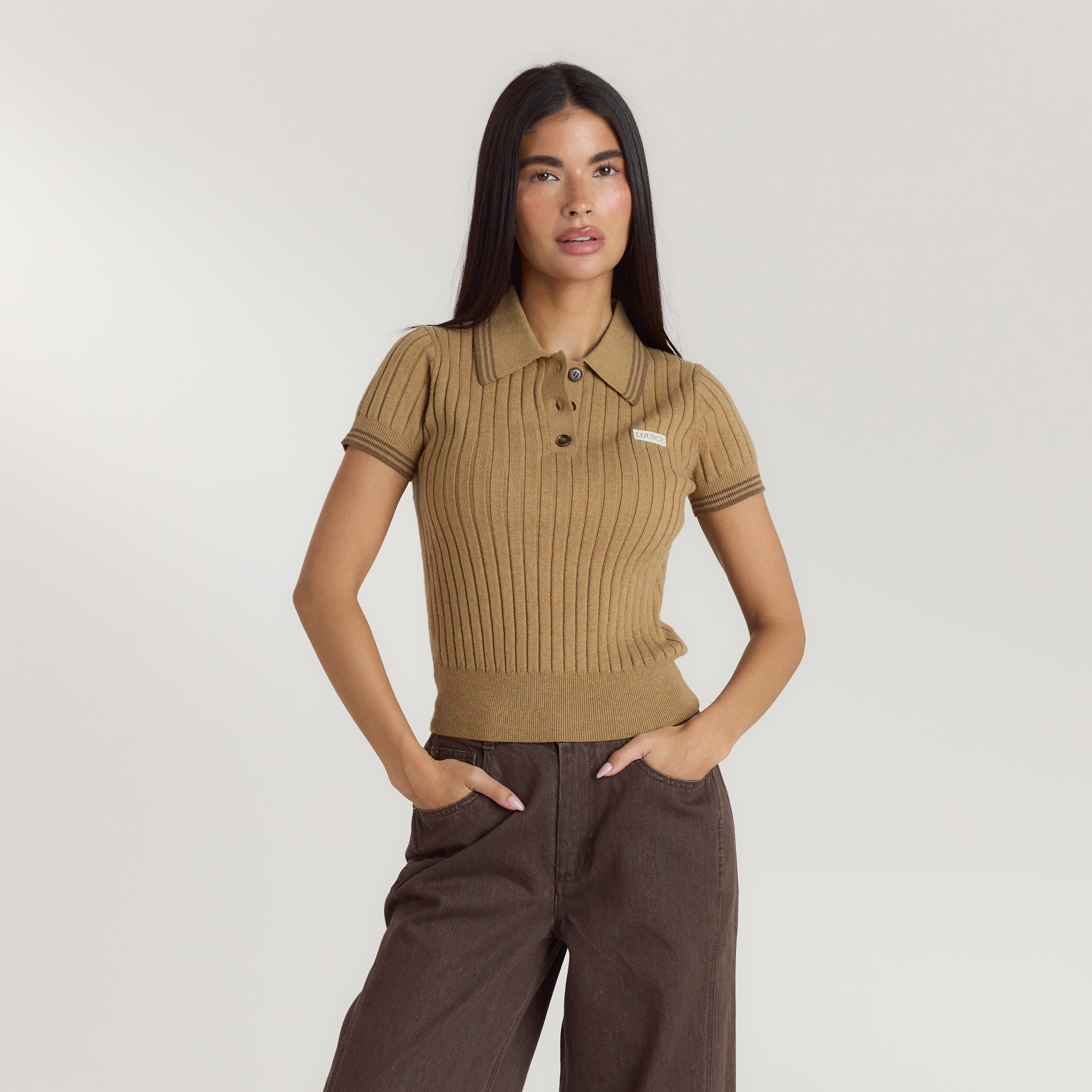 Knitted Polo Top - Tan